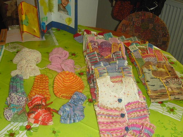 Und wieder ist eine neue Lieferung angekommen. Die Mutti meiner Freundin hat diese vielen tollen Strampler und Sets gestrickt!!!